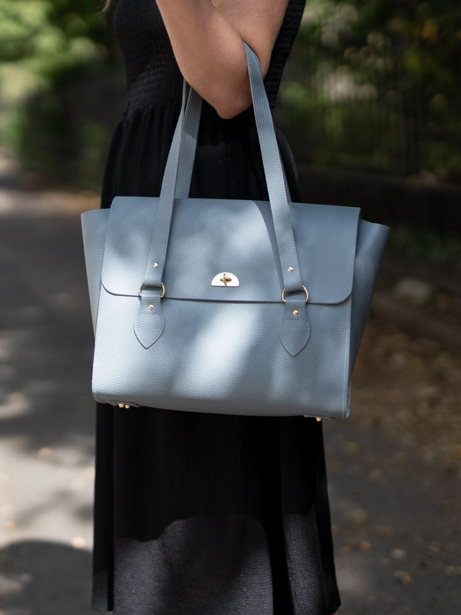 – Carried by its leather top handles and closes securely thanks to its twist-lock closure.