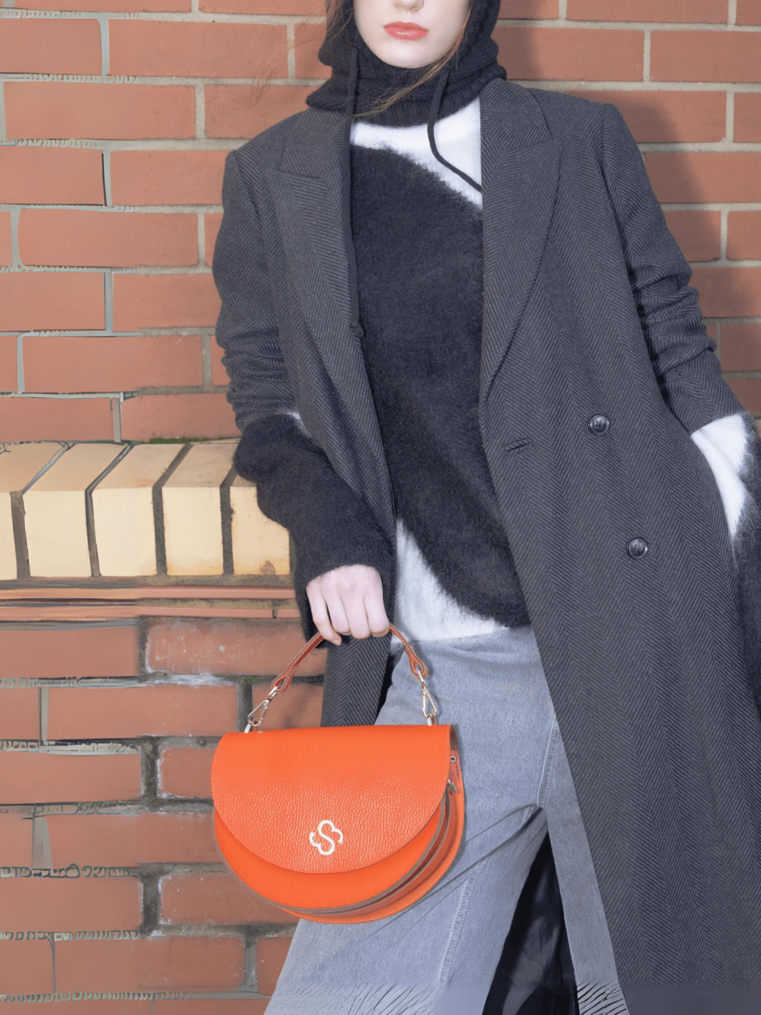 This sophisticated semi-circular bag is equipped with a detachable top handle and detachable crossbody strap for the ultimate versatility. Embellished with our monogram in glinting hardware, The Kate makes for a classy statement piece with ample space for essentials.